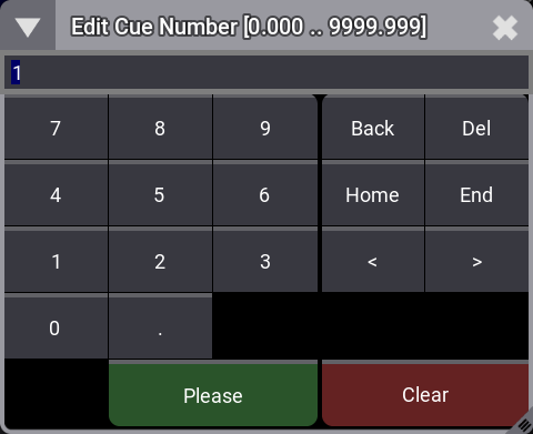 シーケンスの後部分で使われているキュー番号を入力すると、既存のキュー番号との衝突が無くなるまで、すべての後続キューがリナンバーされます。