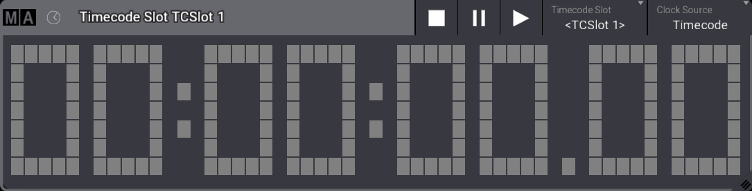 Clock Viewer のタイトルバーにあるボタンで、タイムコード・スロット・ジェネレータを操作できます(Off、Pause、Go+)。これらの操作を行っても、Command Line History のフィードバックは表示されません。