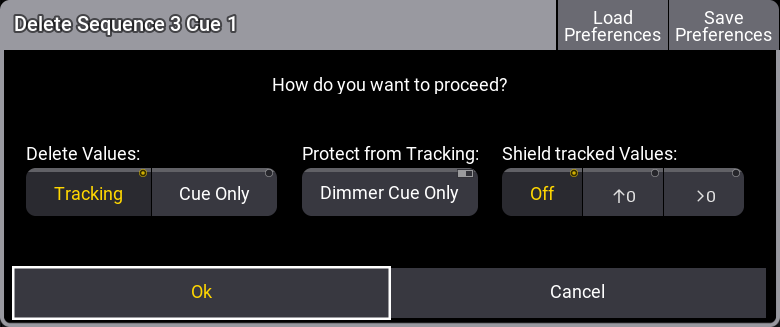 Delete Values には、Tracking と Cue Only の2つのオプションがあります。これは、Tracking と Cue Only のルールのどちらに基づいて削除が行われるかを指定します。