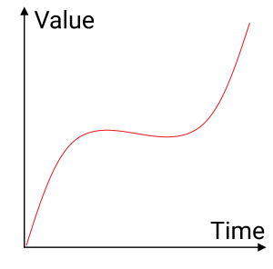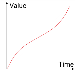 キューパートのプロパティ Transition で、あるキューから別のキューへとフェードする際に値がとるパスを変更できます。Transition は、キューパートごとに設定できます。