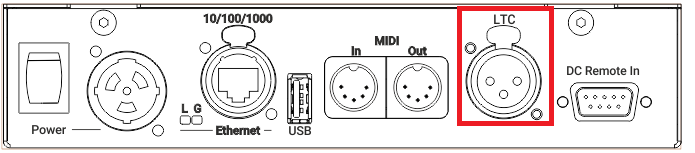 LTC コネクタは、タイムコード入力に用いたり、音響エンジニアなどに対するタイムコード出力として利用したりできます。