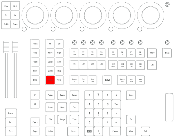 grandMA3 compact 卓および grandMA3 onPC command wing での位置