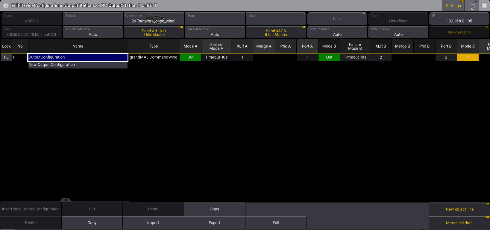 出力ステーション(onPC ステーションなど)をレイアウトに割り当てるには、以下のように入力します。