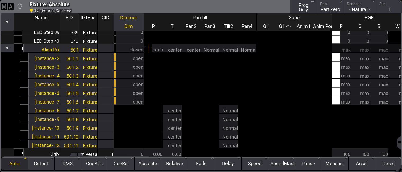 - フィクスチャをパッチ。詳しくは パッチとフィクスチャ設定 を参照してください。