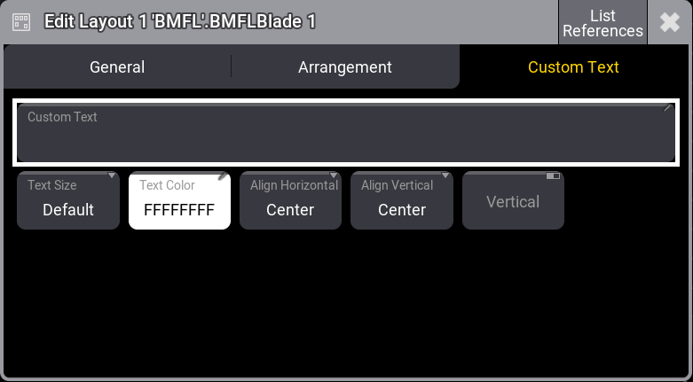 - Align Vertical: Custom Text の垂直方向の配置です。