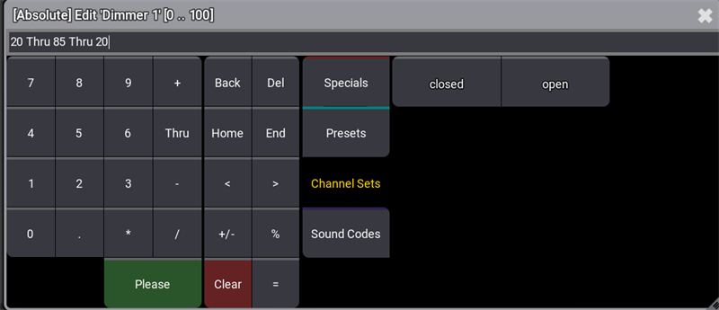 Align 機能は、コマンドラインからも適用できます。フィクスチャを選択し、以下の例のように Dimmer 値を設定してください。