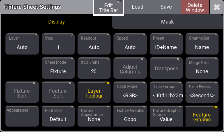 Fixture Sheet Settings を開き、Fixture Graphics をタップします。