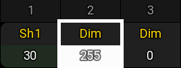 DMXテスターの影響を受けているDMXチャンネルでは、値の背景が白になります。