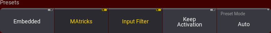 Keep Activation をオンにすると、プリセットの保存時に、新たに作られたプリセットがプログラマでアクティブになり、キューなどにすぐ保存できるようになります。 オフの場合、プリセットは保存されますが、値はプログラマで非アクティブになります。