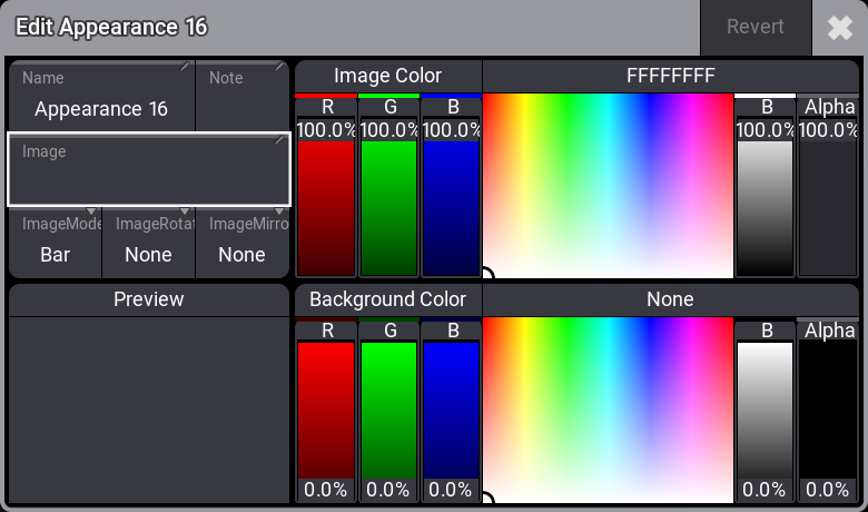 空の Appearance プール・オブジェクトを編集すると、以下のようなエディタが表示されます。