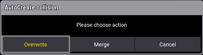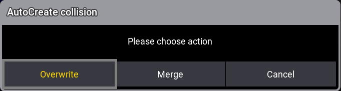 既存のプリセットを上書き(Overwrite)またはマージ(Merge)するか、操作を中断(Cancel)するかを尋ねるポップアップが表示されます。