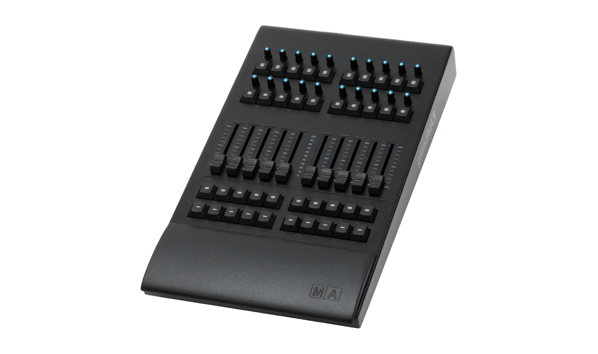 grandMA3 onPC fader wingは、10本のモーターフェーダと20個のロータリーエンコーダを備え、シンプルな設計ながら最大40個のシーンを個別に再生することができます。