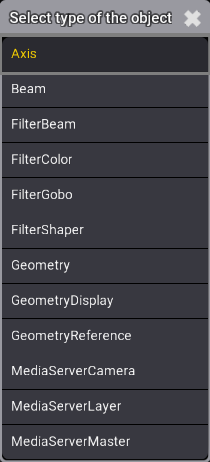 Select type of the object ポップアップが開きます。