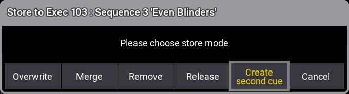 今回は確認のポップアップが出ません。少なくとも2つのキューがあるシーケンスに保存する場合、次の整数をキュー番号として保存するものとみなされます。それ以外の場合は、キュー番号を指定する必要があります。