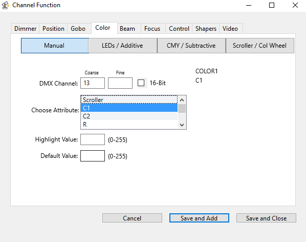 - アトリビュートに追加の Fine DMXチャンネルがある場合は、16-Bit チェックボックスをチェックします。