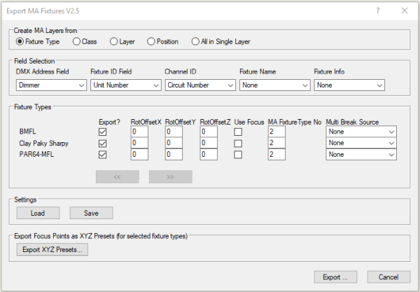 2. Export MA Fixtures V2.5 エディタが開きます。